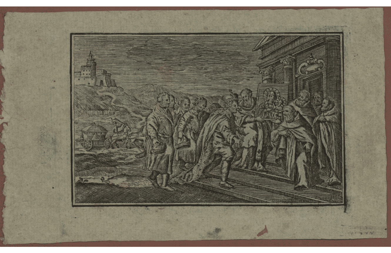 Князь Владислав Опольський передає отцям паулінам чудотворний образ Матері Божої. Джерело: Національна цифрова бібліотека POLONAГотична катедра