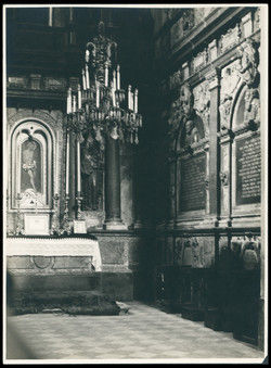 Внутрішнє оздоблення каплиці Кампіанів, 1925. Фото: Адам Ленкєвич / Національна цифрова бібліотека POLONAПроте грандіозні плани змін львівських святинь у XVIII столітті часто завершувалися скандалами й судовими тяганинами. Так Шептицькі, розбудовуючи комплекс Святоюрської гори, наразилися на супротив отців василян, які мали там монастир і не хотіли жодних змін. А Сєраковский зі своїми планами перебудови катедри наразився на невдоволення і гнів львівського маґістрату: на архієпископа навіть писали скарги до Риму. Утім, як підкреслює львівський дослідник Юрій Смірнов у своїй статті про базиліку, Папа Климентій ХІІІ зрештою прийняв позицію Сєраковского. Упродовж 1760–1770-х років спочатку архітектор Петро Полейовський, а згодом Клеменс Фесінґер здійснили ґрунтовну перебудову катедри, а Станіслав і Мартин Строїнській та інші митці розписали її стіни.