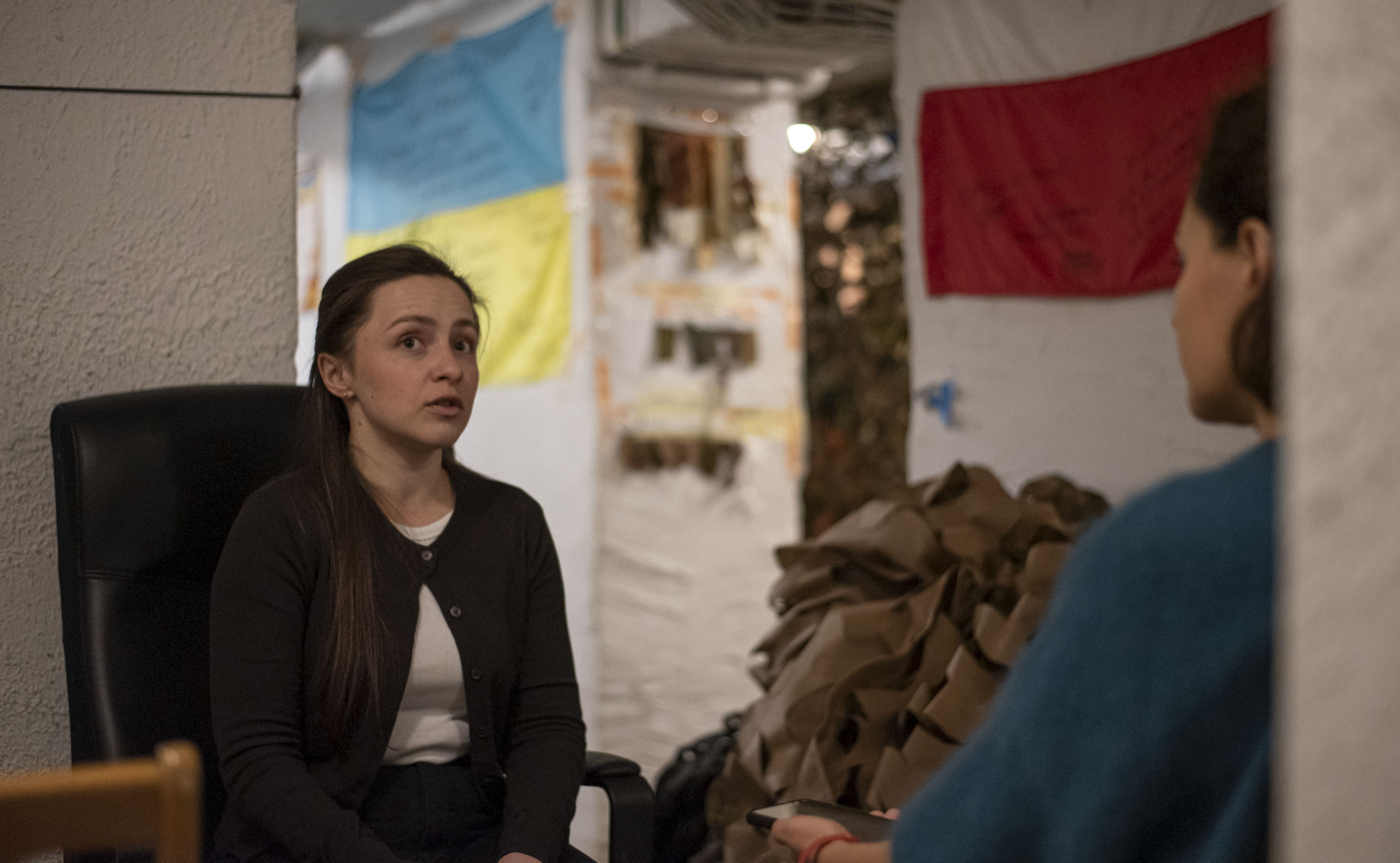 У кімнату, де плетуть сітки, заходить невисока, 31-літня жінка, акуратно зачесана назад, у білій футболці й светрі під тон каштанового волосся. Аліна — головна координаторка: займається логістикою, домовляється про матеріали, спілкується із замовниками, відправляє сітки в Україну. Сьогодні не її чергування, але вона чекає доставки спанбонда. Телефон в Аліниних руках постійно дзвонить, тому навушник весь час у вусі.